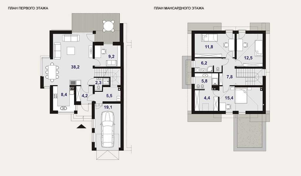 Площадь второго этажа: 63,9